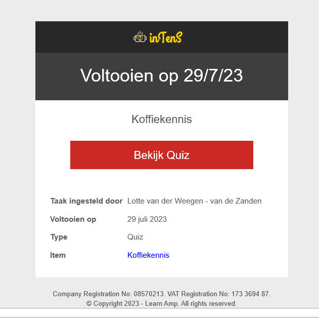Dit artikel geeft een volledige lijst van e-mailmeldingen die je kunt ontvangen van Learn Amp.