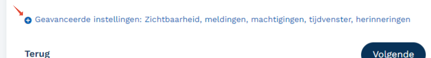 - Ga naar de subkop Breng mensen op de hoogte van updates voor dit evenement. Klik hiervoor zonodig de Geavanceerde instellingen open.
