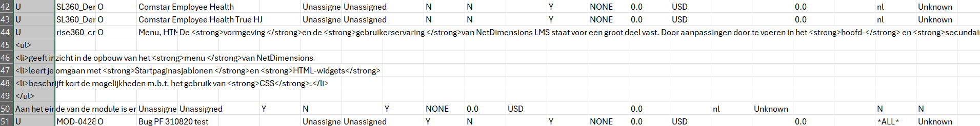 Sommige rapportages uit leerplatformen bevatten kolommen waar tekst met HTML-code in staat. Dat is vaak bijvoorbeeld de kolom waarin de omschrijving van de leeractiviteit staat.