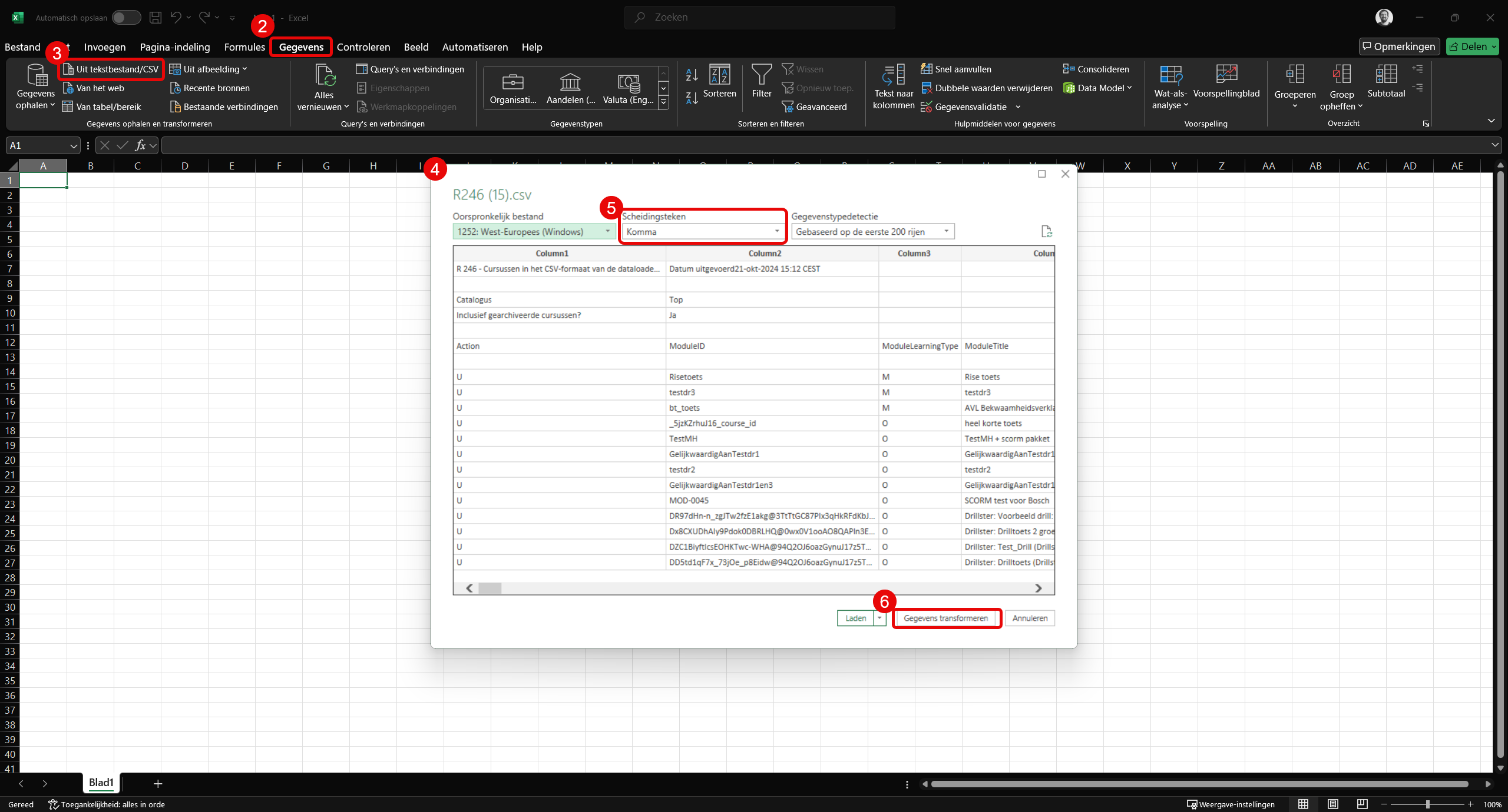 - Open je CSV-bestand, je krijg nu een pop-up te zien.